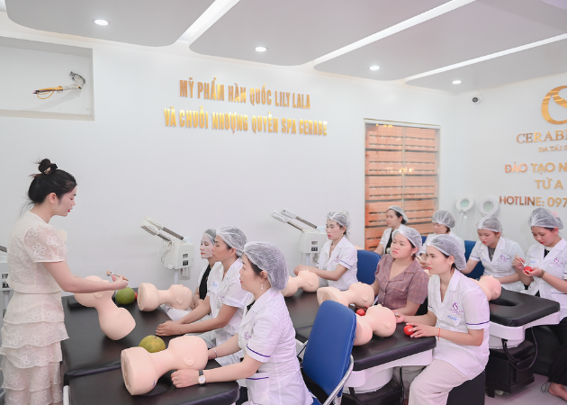 Spa Cerabe cam kết mang đến chương trình đào tạo bài bản và chuyên sâu, giúp đối tác vận hành spa hiệu quả và phát triển bền vững. Chúng tôi hợp tác cùng Trường Cao Đẳng Công Nghệ Y Dược Việt Nam và các chuyên gia hàng đầu từ Hàn Quốc để đào tạo chuyên sâu về kỹ thuật chăm sóc và điều trị da chuẩn Y khoa. Ngoài ra, đối tác sẽ được trang bị kiến thức về vận hành spa tối ưu doanh thu, kỹ năng tư vấn và chăm sóc khách hàng chuyên nghiệp. Đặc biệt, các khóa đào tạo cũng tập trung vào chiến lược kinh doanh, giúp spa phát triển bền vững và thu hút khách hàng lâu dài.